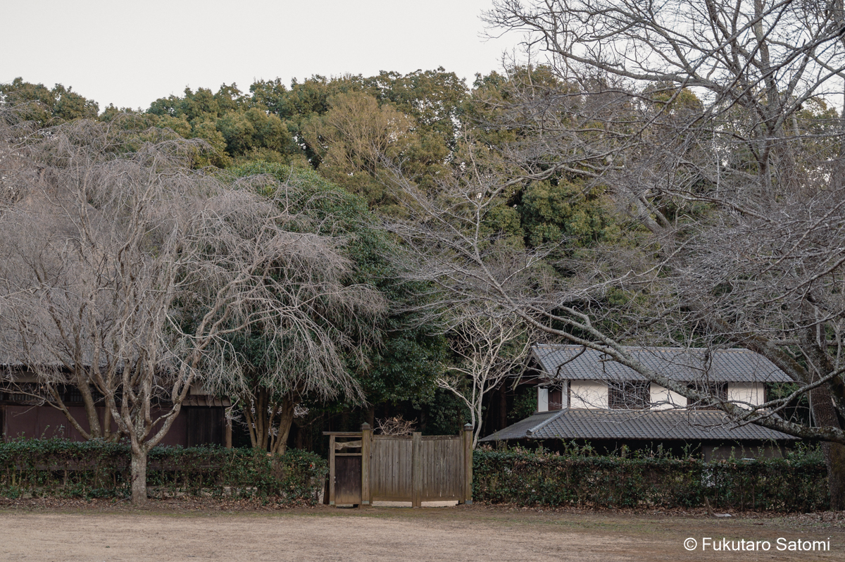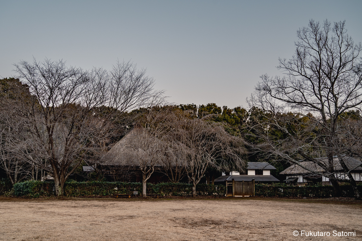 2月1日は小望月、満月ではないけれど満月度99.7で、肉眼ではもう満月に見える。今回は藁葺き屋根の上に昇る満月という趣向、日没前のまだ明るい時分から撮影したかったので、満月の一日前の小望月の日に出かけたのだった。