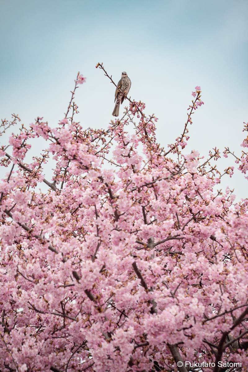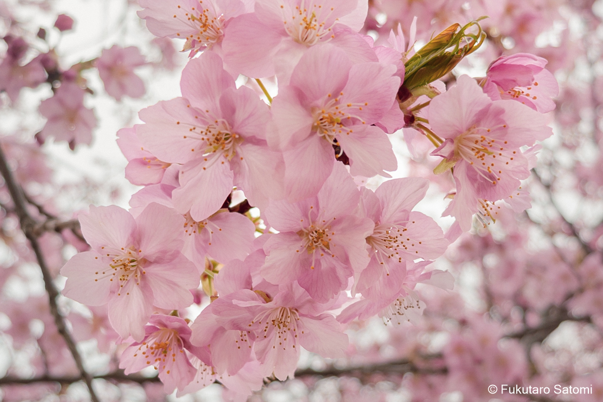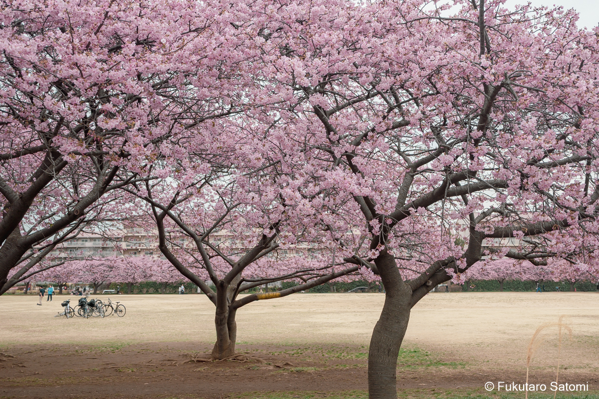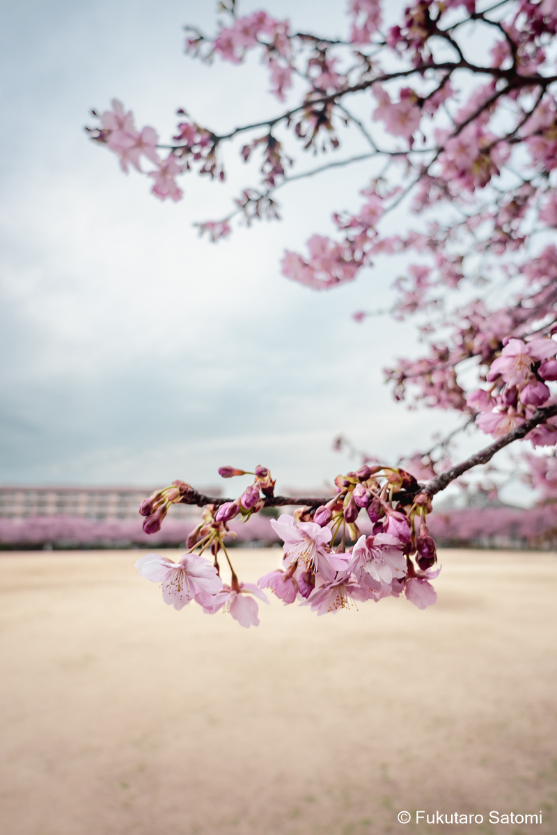 自由広場の河津桜は4・5分咲き