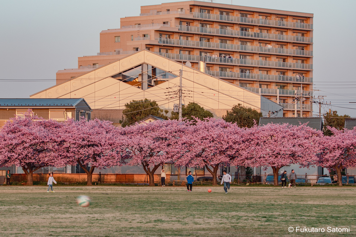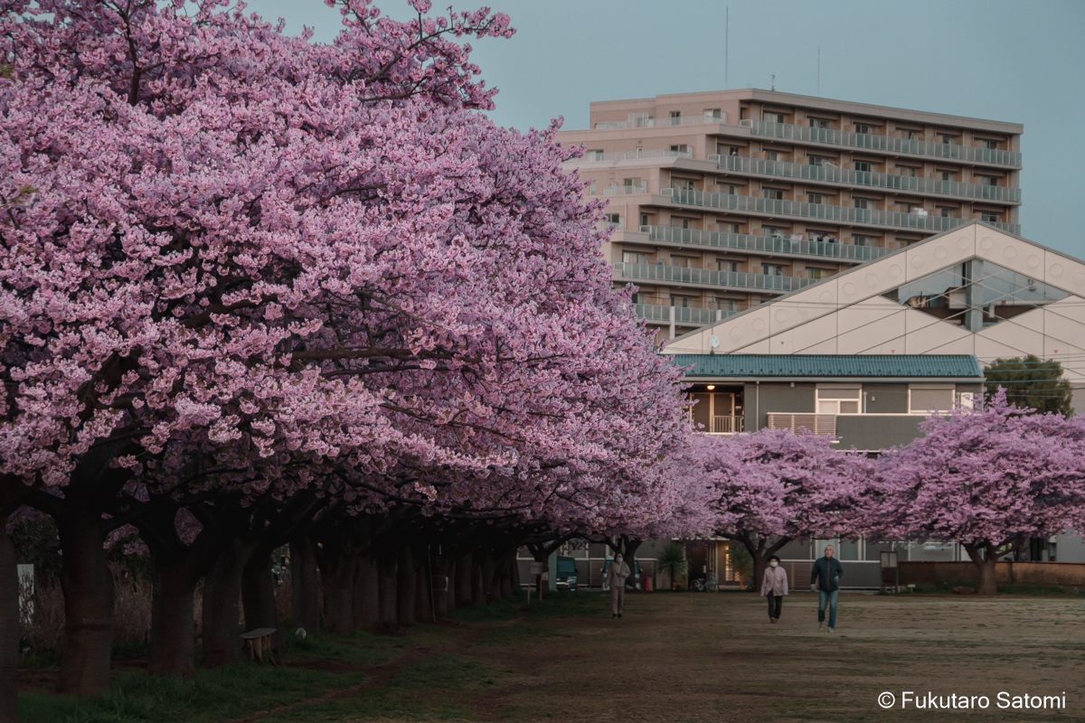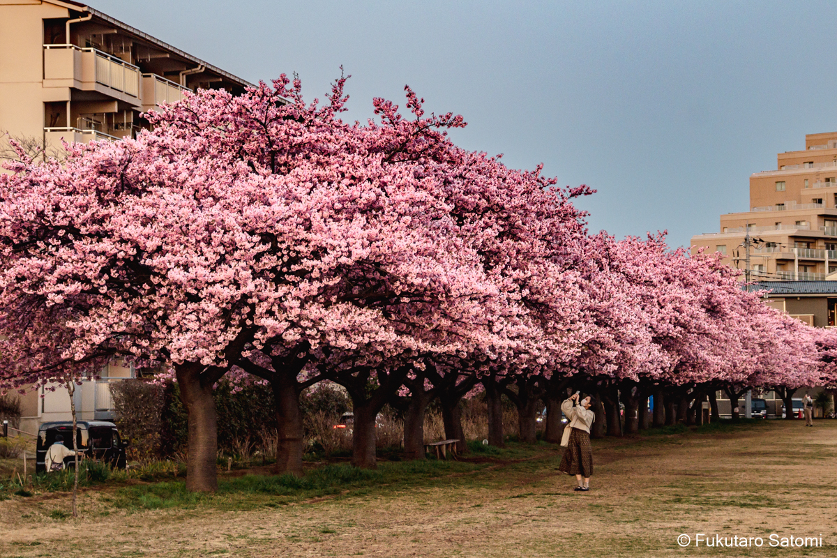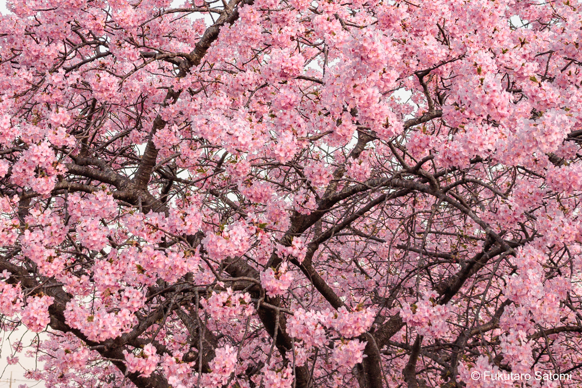 今回は、河津桜が満開を迎えていそうなので、例の住宅地内にある広場で撮影することにした。撮影環境は良いとは言えず、どうしても民家とか電線が写り込んでしまうのは仕方ない。近頃はアプリを使えば電線なども消すことはできるが、それをしてしまうともう写真ではなくなってしまうので、それだけには手を出さないようにしている。それでも電線が邪魔で仕方がないという場合は、現像の段階で、消すのではなく、見えなくなるように工夫してみた。
