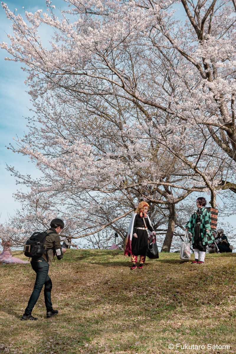 佐倉城址の桜は見ごろ 佐倉城址公園では明日まで(4月1日)「佐倉のさくら」が開催されている。今日は雨も降る寒い一日だったが、昨日は暑すぎず寒すぎず、風もなく穏やかなお花見日和だった。 アニメの世界から飛び出てきたようなコスプレプレイヤーが、そこかしこで撮影会をしていた。