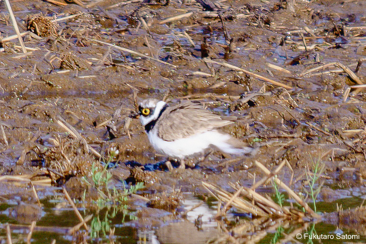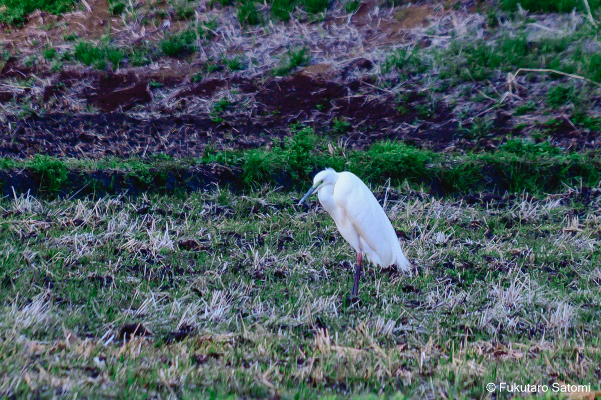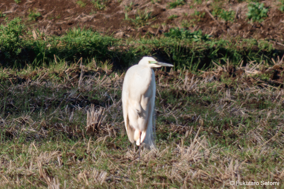 親鳥の羽の中から首が垂れている 谷津田には長いレンズをつけて構えるカメラマンの姿が何組か、何の鳥を狙っているのだろうか。カメラマンの姿がなくなった後、ダイサギが姿を現した。目先に緑がかった婚姻色を確認できる。羽の中から首がだらりと垂れ下がっているのが見えるが、あれは何だろう、子どもなのか…有袋類のように、親鳥の中で子どもを育てるなんて話は聞いたことがないが… 見慣れない鳥もいた。雀ほどの大きさでアオバズクのような黄色い目をしているが…?