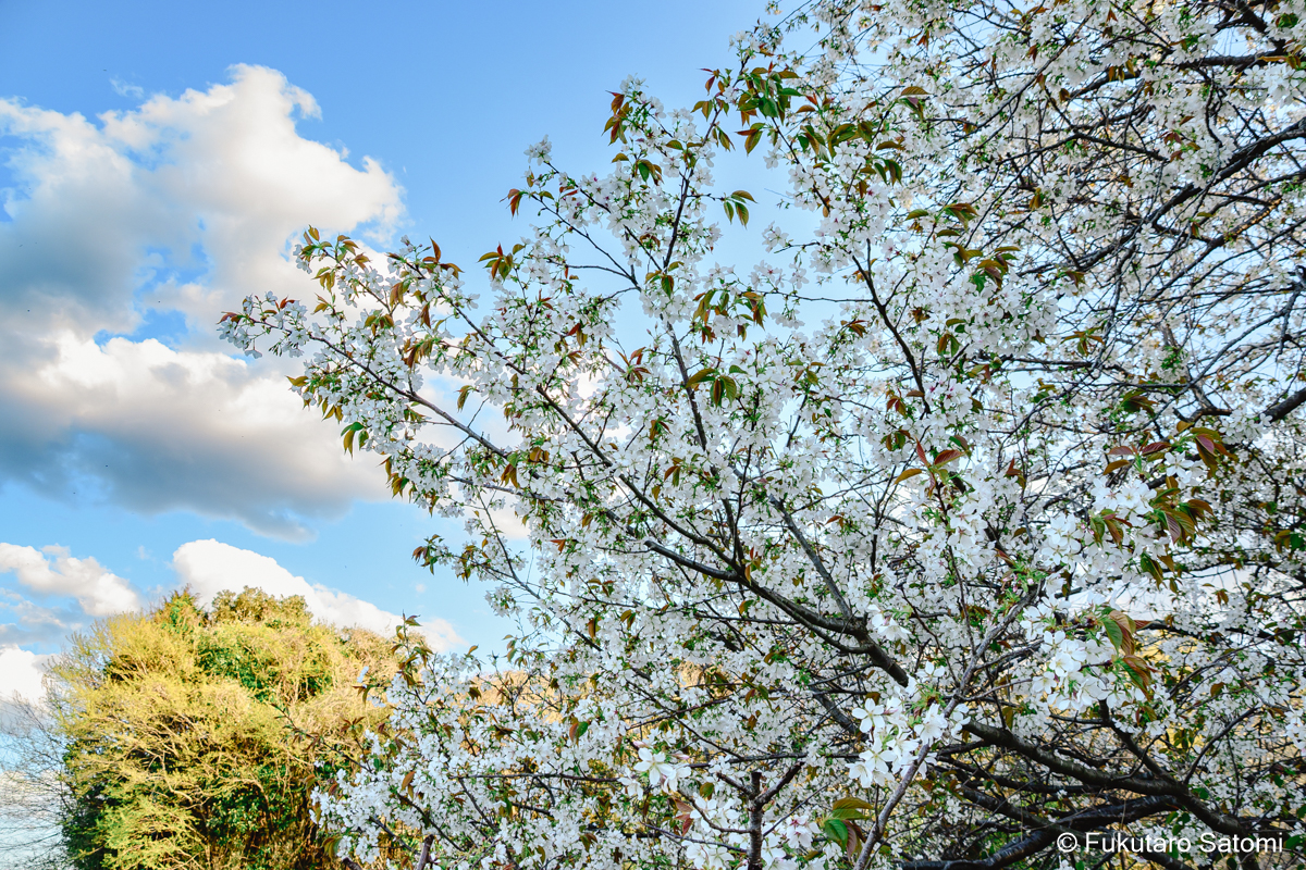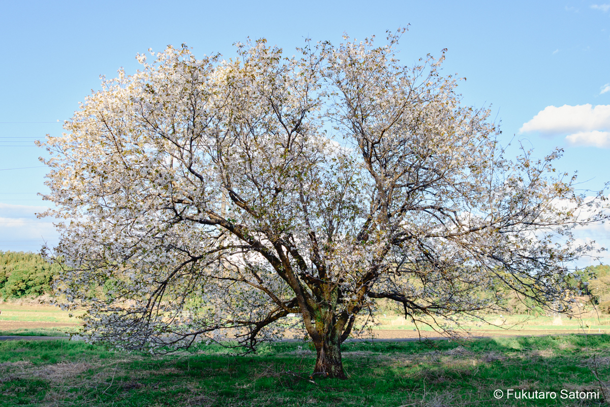 里山自然公園の近くに、立派な山桜が見ごろを迎えている。