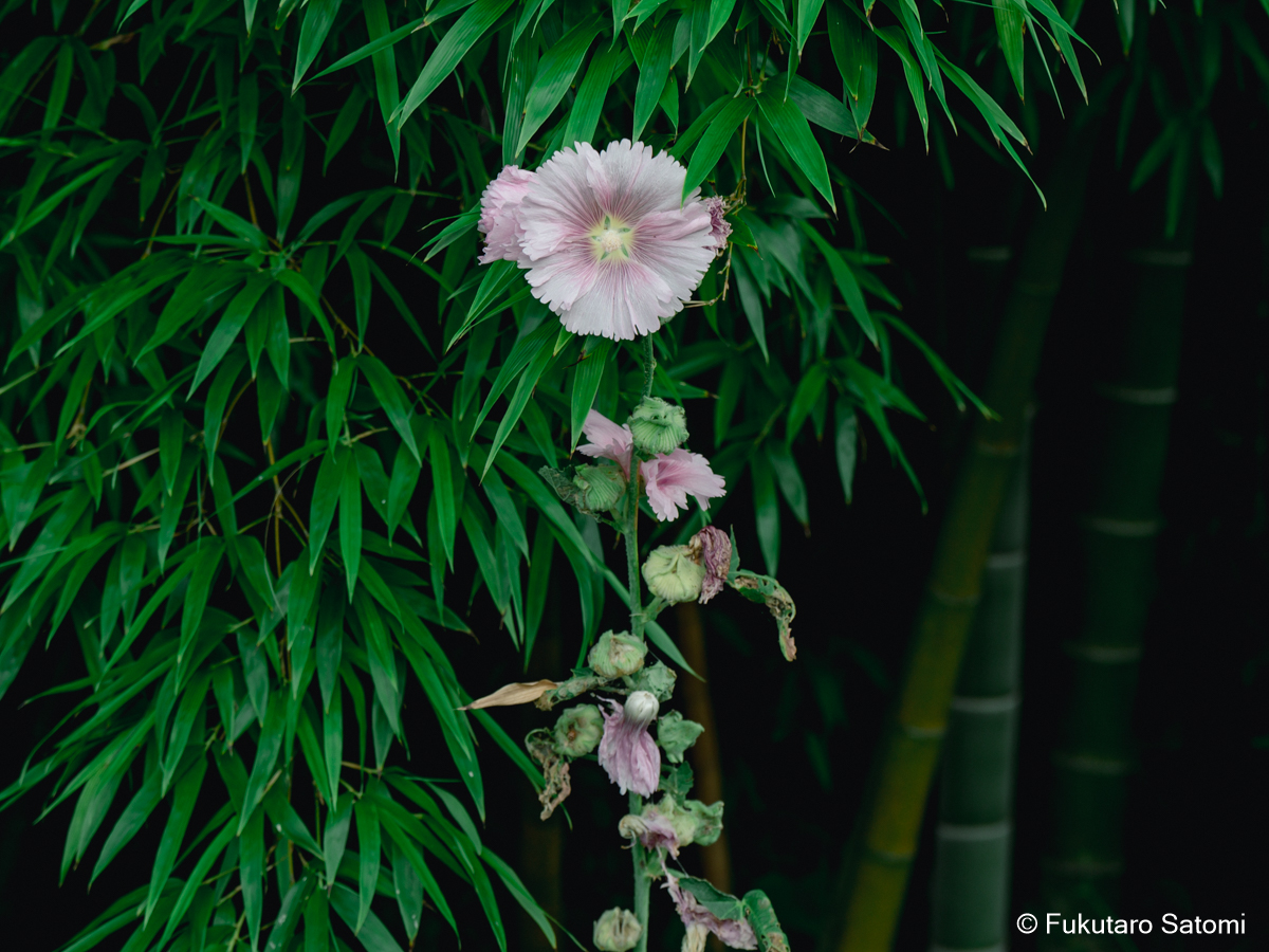タチアオイがついに 連日の夏日・猛暑日、いよいよ関東甲信越地方も梅雨明け到来か、と思う一方で、空は白い薄い布に覆われているようで、抜けるような夏空はまだお目にかかっていない。そんな空を見上げて、まだもうちょっと時間がかかるかもしれない、などとも思ってしまう。 さて、タチアオイはどうなっただろうか、先端まで咲き切っただろうか。久しぶりでラベンダーランド近くのタチアオイを見に行ってみた。