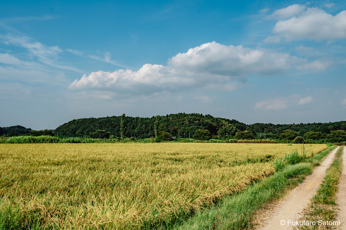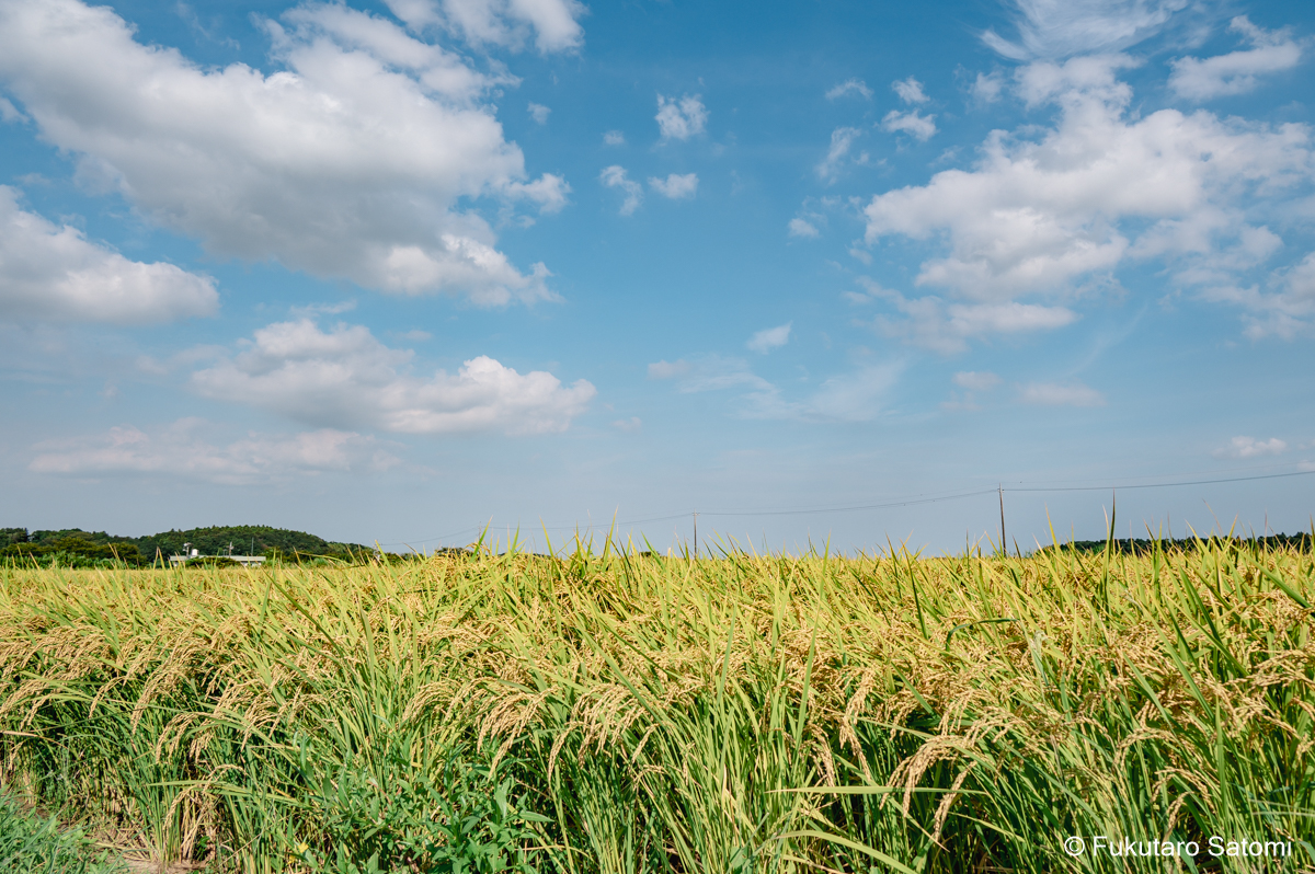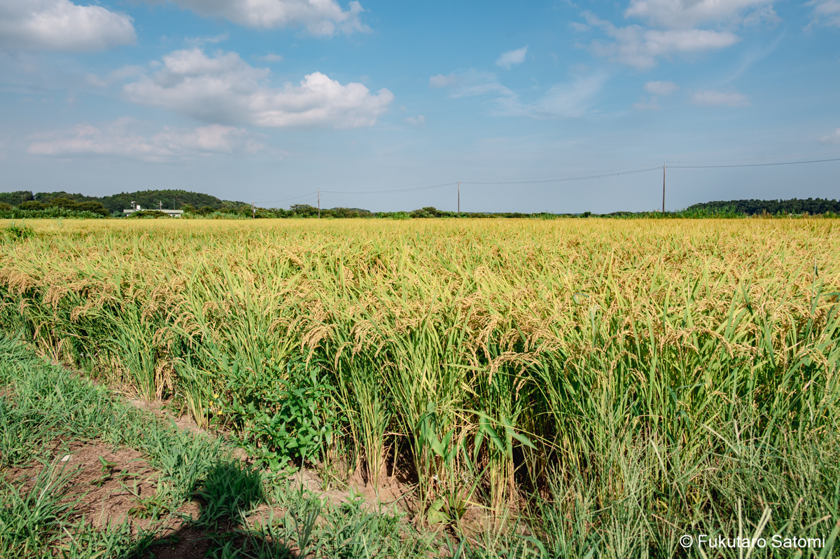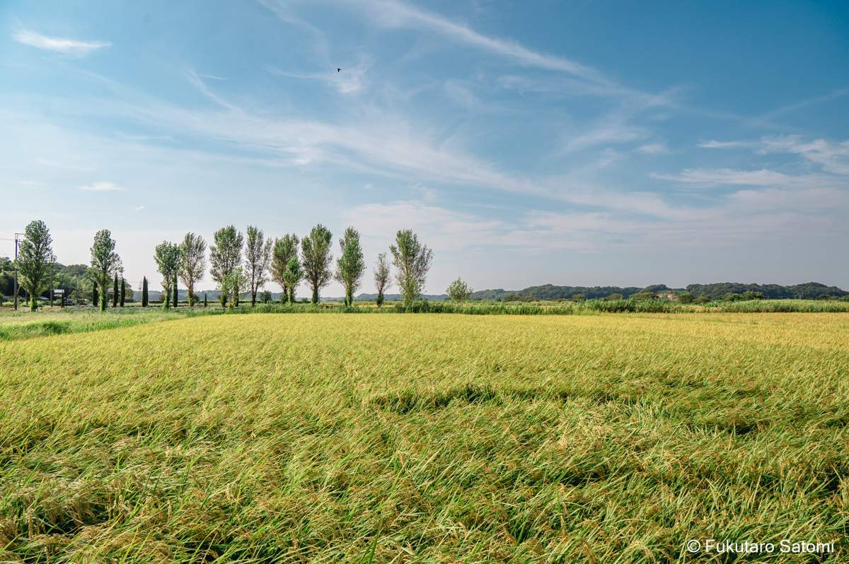 天高く実りの秋 今年は夏日・真夏日の連続、さらに水不足の心配もあって、地方によっては凶作の声もあったが、ここ佐倉では、黄金色に頭を垂れて刈り入れが始まるのを待つばかりであった。一部の田んぼでは、すでに刈り取りが終わっていた、早場米だったのか?千葉は東日本一の早場米の産地だとか…