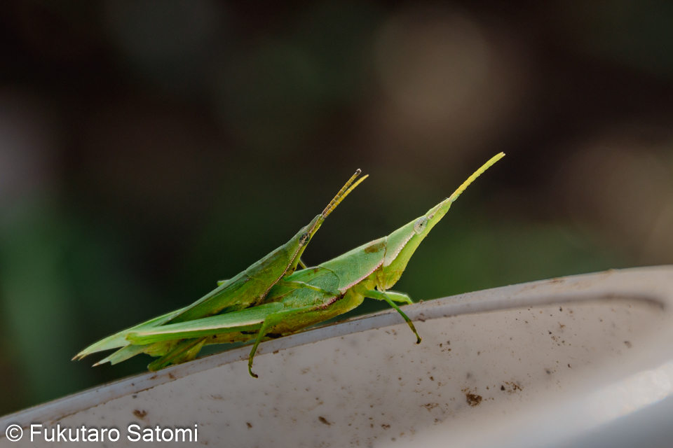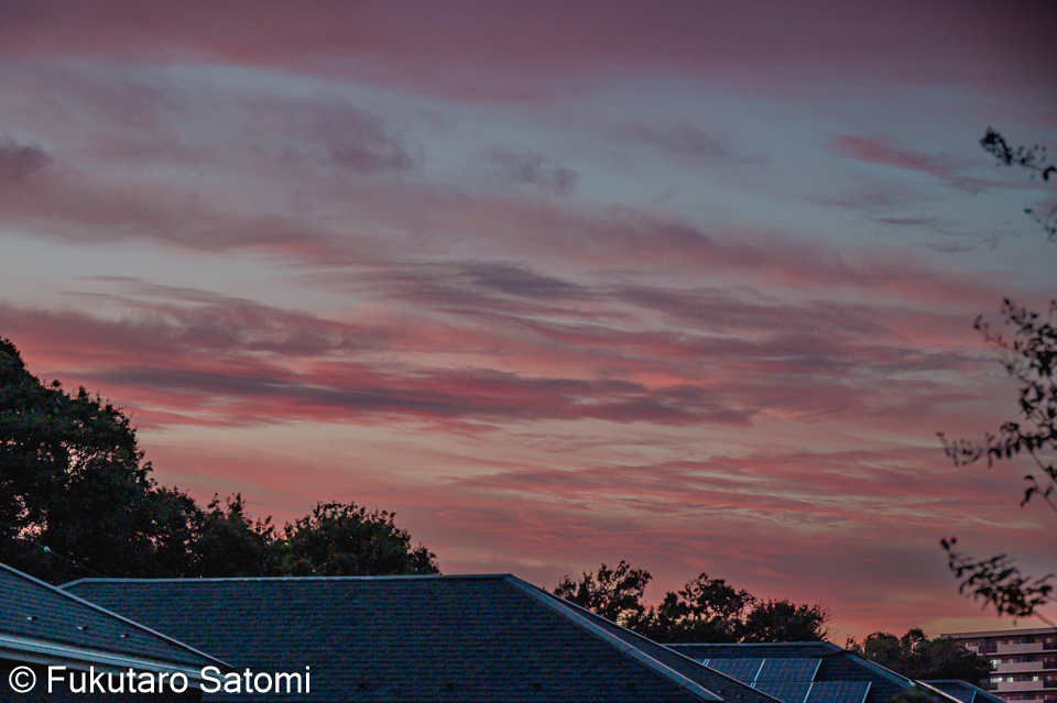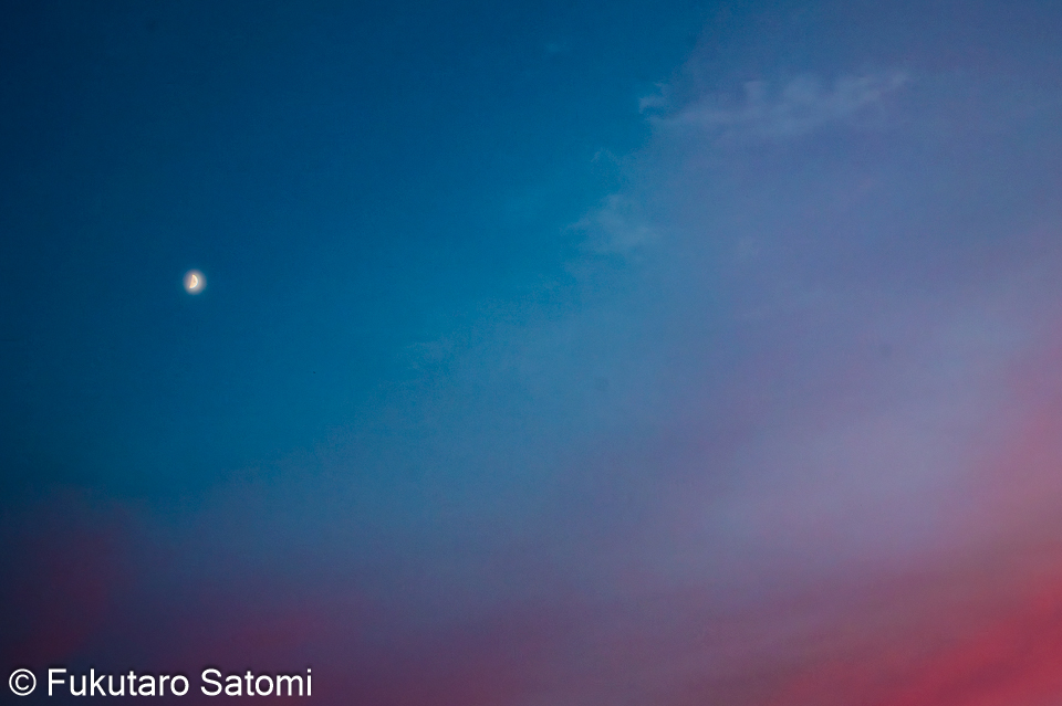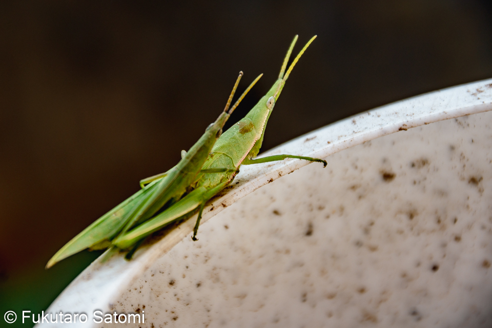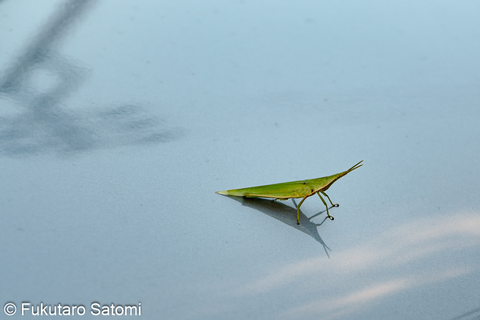 新車で谷津田へ・夕焼け・オンブバッタ・半月 安全性能が高い新車に乗り換えてからほぼ一週間、車通りが少ない谷津田の農道で慣らし運転、家からバッタが無断乗車していた。 10月29日の夕焼けはきれいだった。 庭でオンブバッタを発見 10月30日は半月