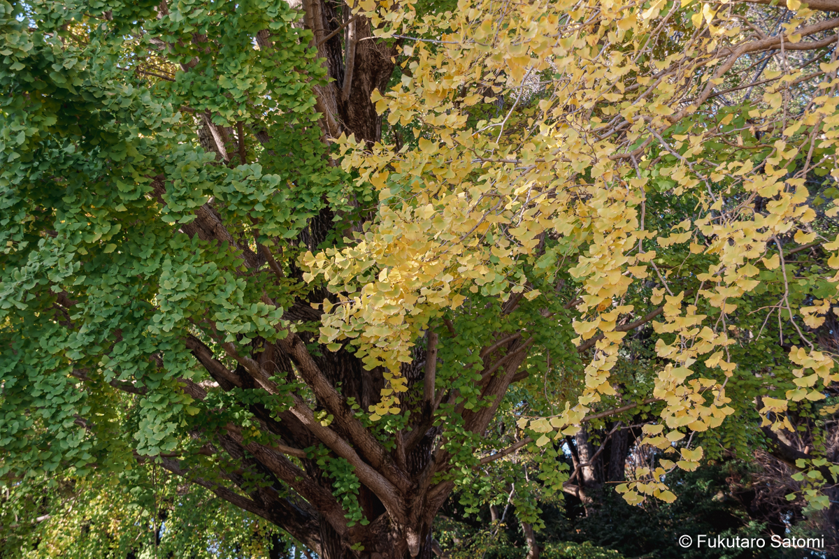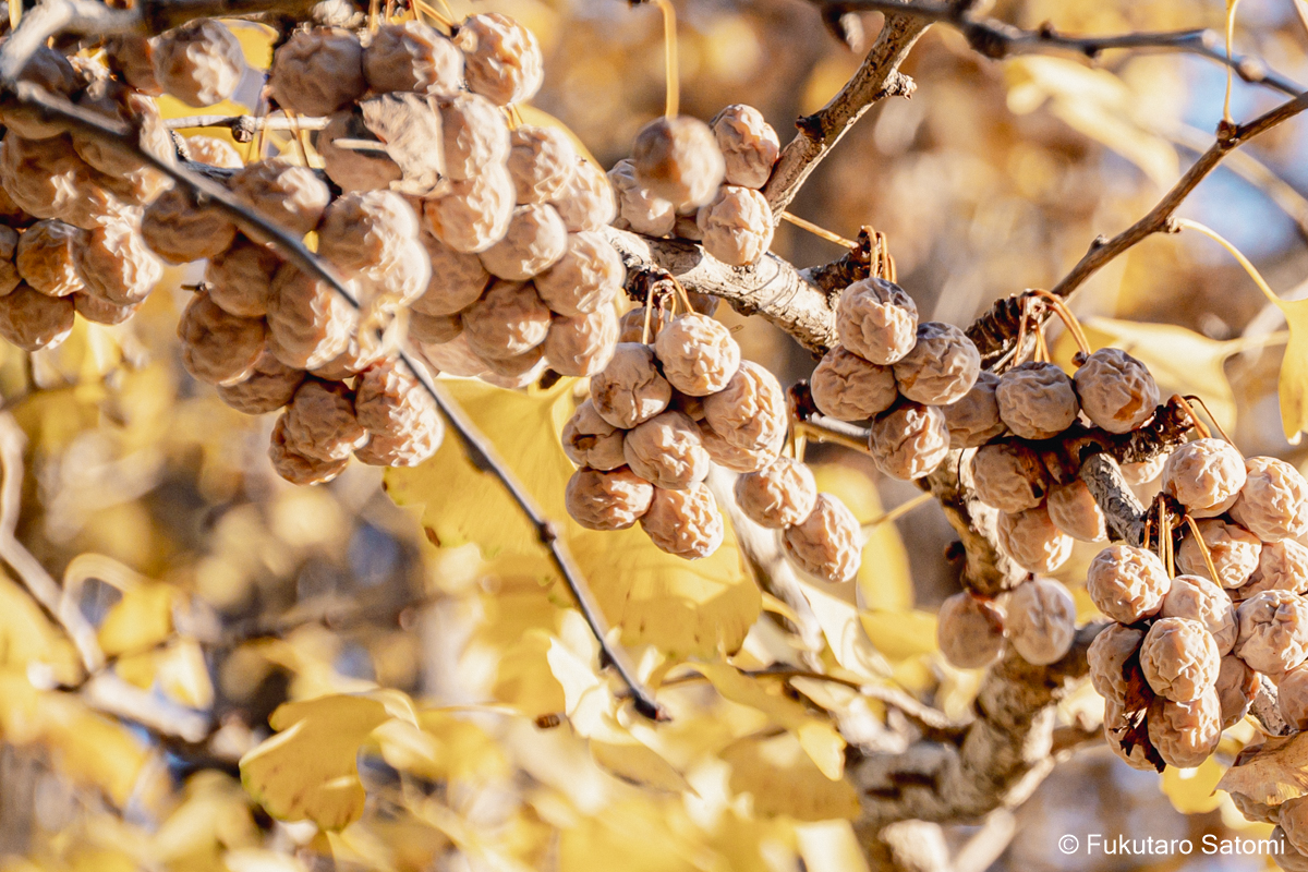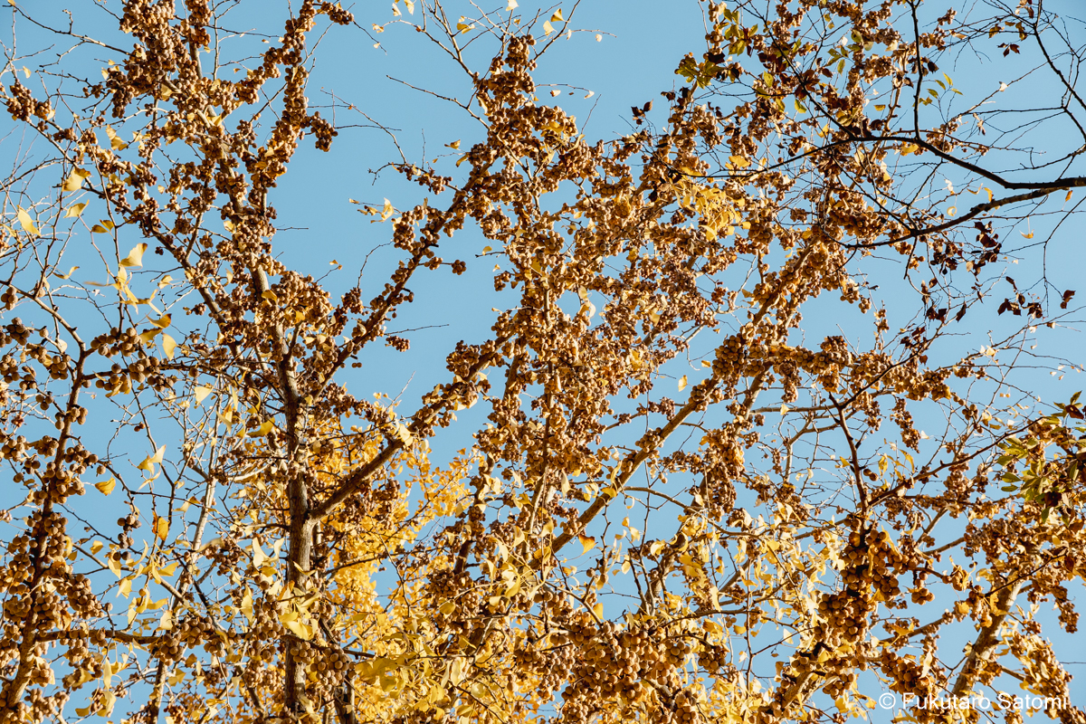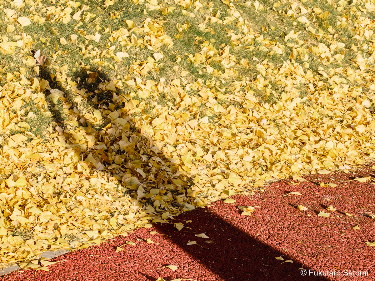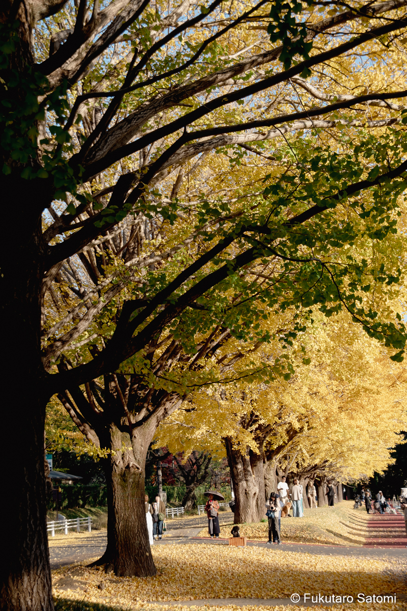 実際に月がイチョウ並木の背後に見え始めたのは4時40分頃だった。その頃はまだ明るさは残っていたが、イチョウ並木の上に昇る頃には、あたりはすっかり暗くなっていた。こうなってからの撮影は、周囲が闇の中に沈んでしまって一気に難しくなる。前日の4日は十五夜で満月度は99.5%、月の出はほぼ一時間早い15時24分、周囲の景色を取り込んだ写真を撮るには、その日の方が条件が良かったのだった。