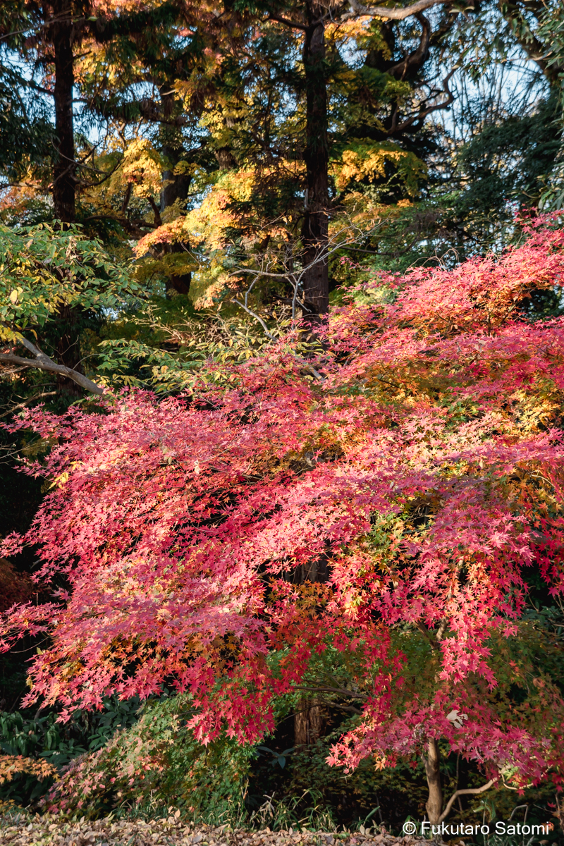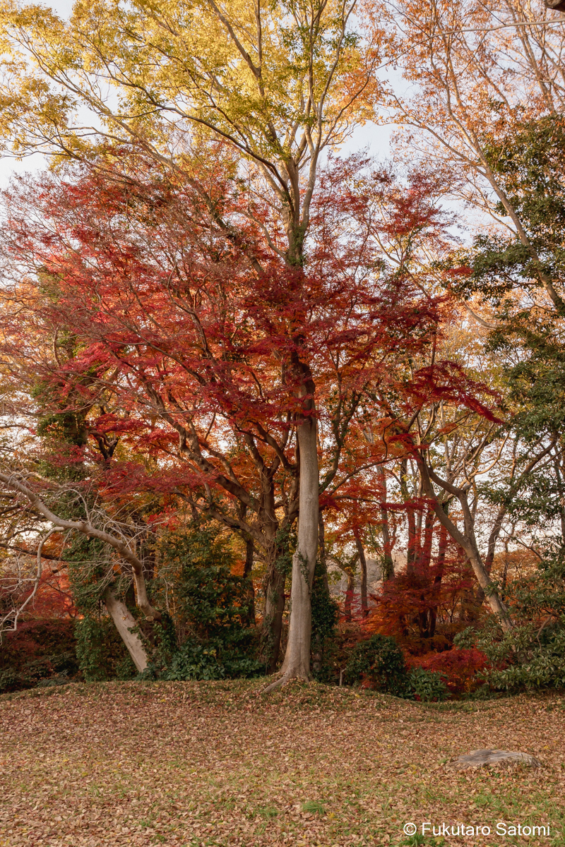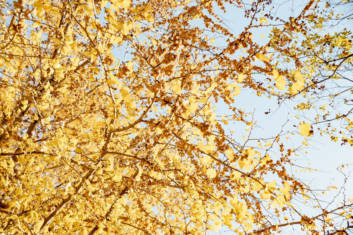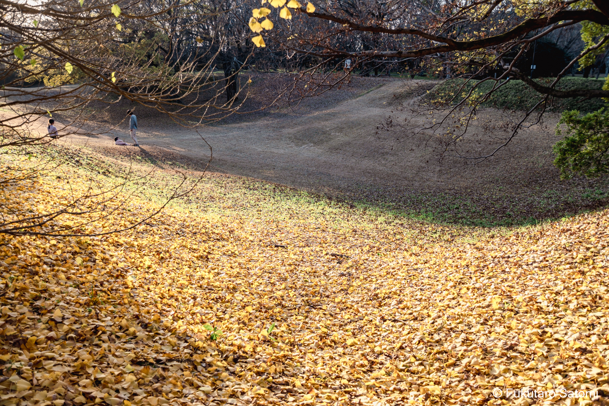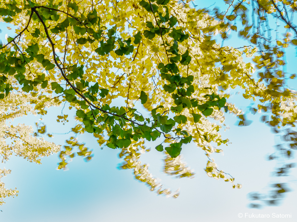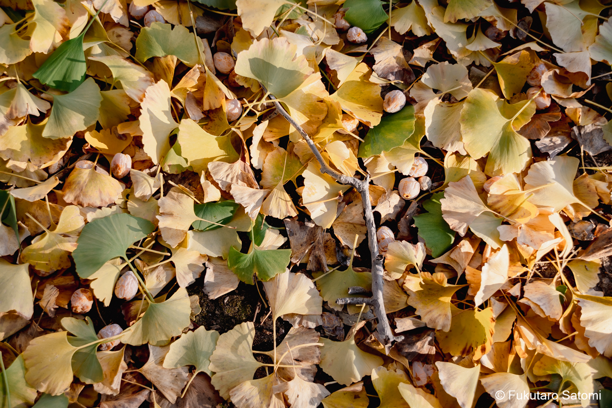 実際に月がイチョウ並木の背後に見え始めたのは4時40分頃だった。その頃はまだ明るさは残っていたが、イチョウ並木の上に昇る頃には、あたりはすっかり暗くなっていた。こうなってからの撮影は、周囲が闇の中に沈んでしまって一気に難しくなる。前日の4日は十五夜で満月度は99.5%、月の出はほぼ一時間早い15時24分、周囲の景色を取り込んだ写真を撮るには、その日の方が条件が良かったのだった。