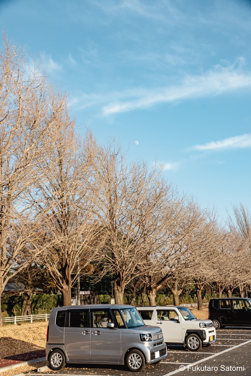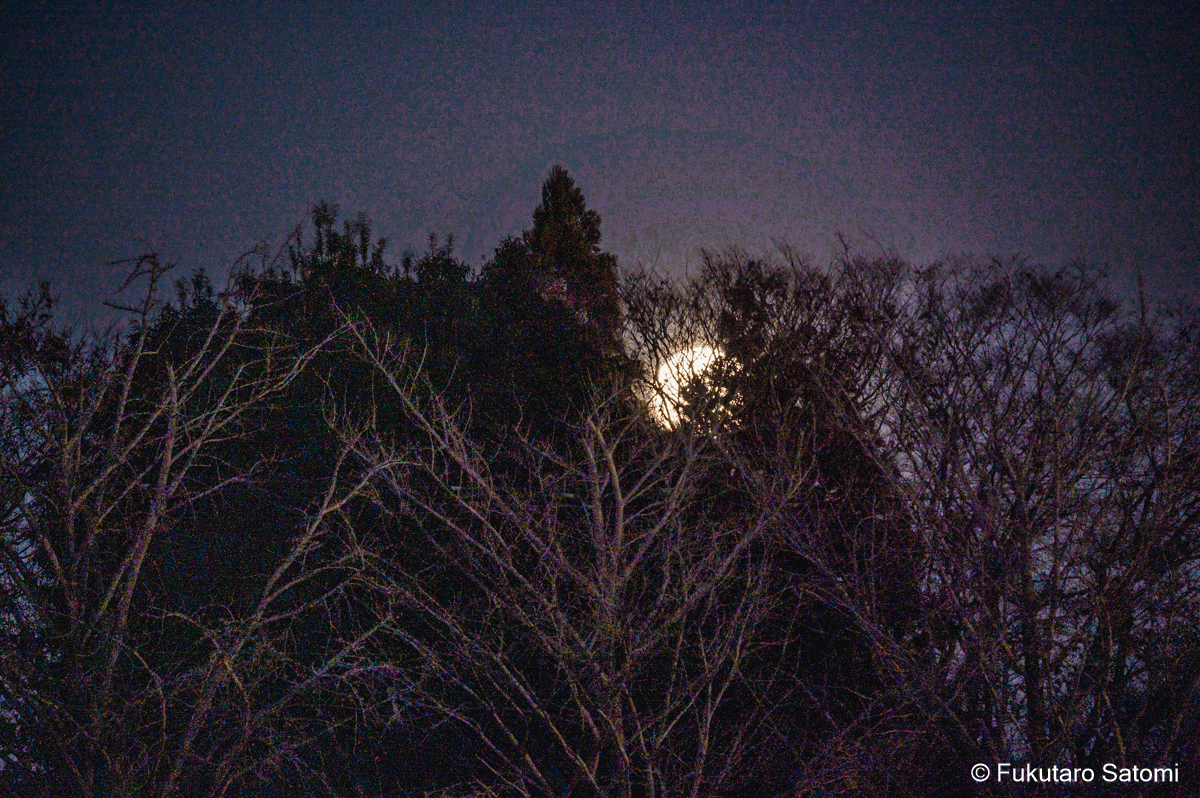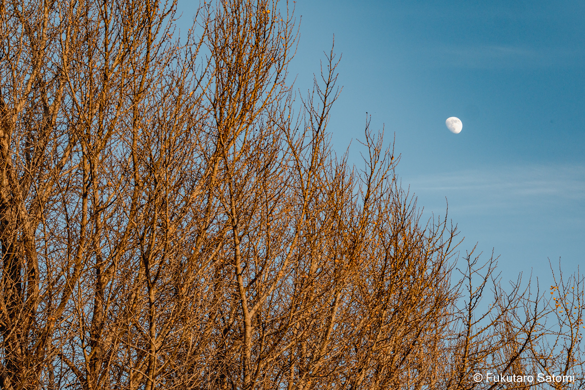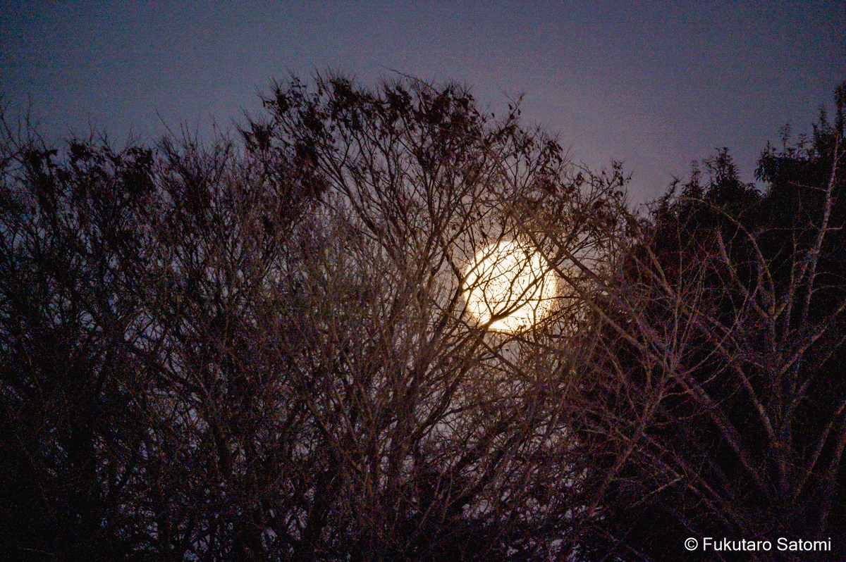 先日城址公園の自由広場で撮影した際、月が昇ってくる方角の確認ができたので、今回の満月は、葉をすっかり落としたイチョウ並木の上に昇る月を撮ることにした。寒波が列島に到来しているそうで、陽が落ちてからは一段と冷え込みが厳しくなってきた。