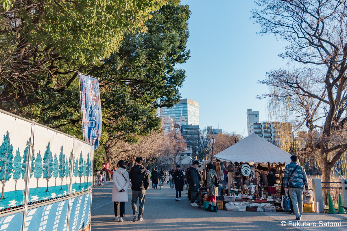不忍池のほとりで 途次、神楽坂から上野公園へ 下町風俗資料館は長い間改修工事が行われていたが、やっと外観が整ってきていた 最強寒波がやって来ているというのに、不忍池のあたりはかなりの人出 骨董市が開かれていた