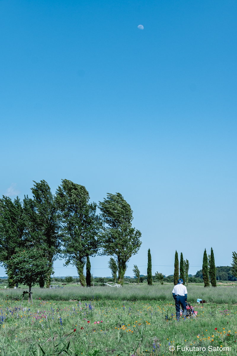 夏日にもう少しで届く暑い日だった。ラベンダー畑では、強い日差しの中で腰をかがめて手入れをしている人たちの姿があった。月の出の時刻まで、ポプラ並木に置かれたベンチに座り、売店で購入したYACHIMATAジンジャーエールを飲みながら待っていた。時おり心地よい風が吹き抜ける。