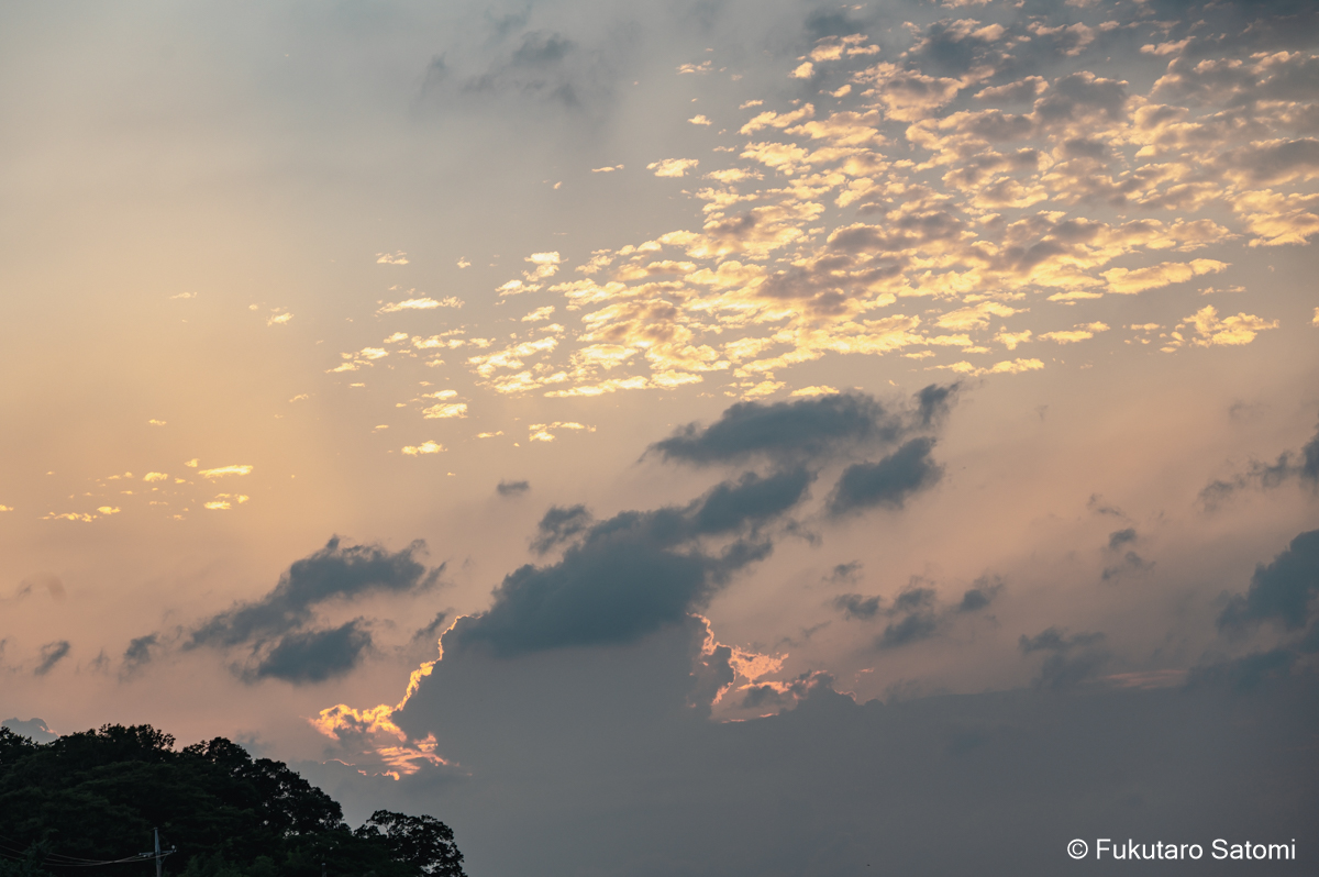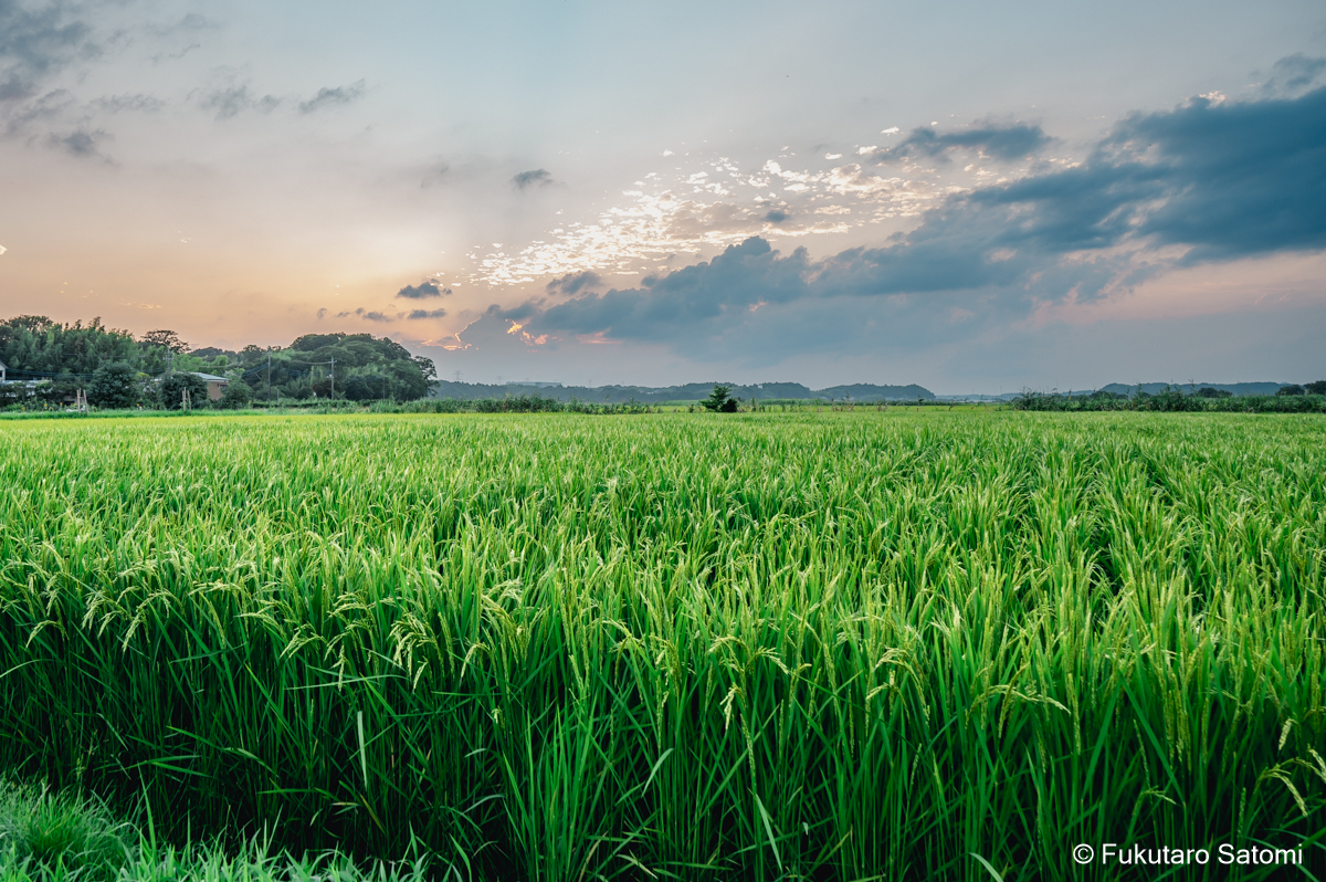 8月の満月 日中の空は雲で覆われ、満月の撮影は半ばあきらめムードだったが、それでも夕方から天気は回復するという天気予報に望みを託していたところ、その予報がピタリと当たった。 このあたりの田んぼは水不足でひび割れることもなく、稲は順調に育っているようだ。 地上付近は雲が多く、少し昇った頃からやっと見え始めた。