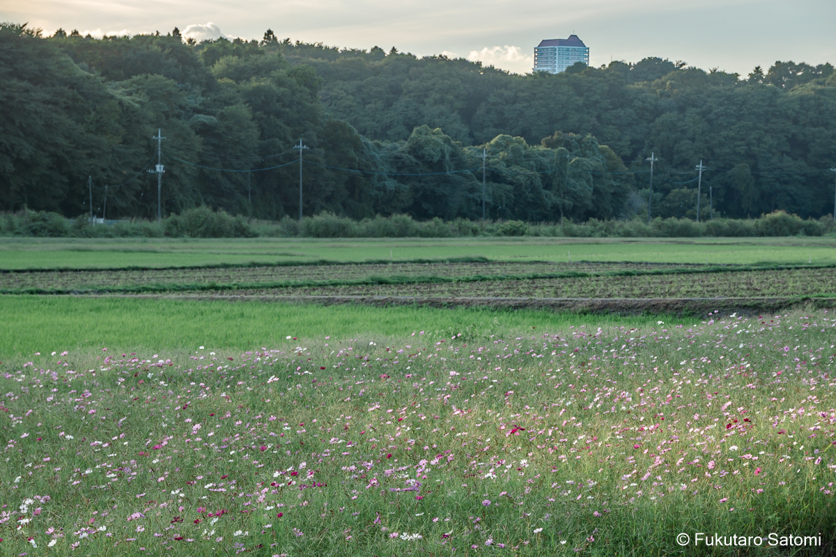 今年も谷津田のコスモスが咲き始めているが、まだ見ごろにはなっていない。来週あたりには咲きそろってくると思われる。